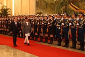 काठमाडौं, मंसिर १८ । चीनको औपचारिक भ्रमणमा रहेका प्रधानमन्त्री केपी शर्मा ओलीलाई चिनियाँ समकक्षी ली छ्याङले ग्रेट हल अफ पिपलमा स्वागत गरेका छन्।