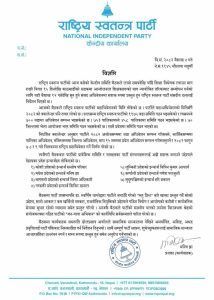 काठमाडौं – राष्ट्रिय स्वतन्त्र पार्टी (रास्वपा)ले पार्टीको महाधिवेशनको मिति तोकेको छ । बिहीबार पार्टीको केन्द्रीय कार्यालय वनस्थलीमा बसेको केन्द्रीय समिति बैठकले महाधिवेशनको नयाँ मिति घोषणा गरेको हो ।